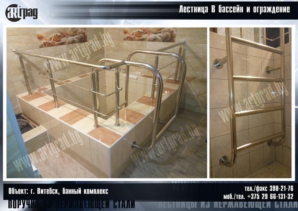 Лестница в бассейн с ограждением. Витебск 2017АРТГРАДАртур Гальчинскийг. Минск, п. Колодищи, ул. Триумфальная, Минск, Беларусь+375 (29) 678-04-40Екатерина+375 (29) 661-31-32Viber - Артурartgrad@bk.ruartgrad.by+375296613132